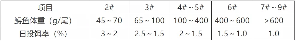 « 根据网箱或池塘中鲟鱼规格及数量,参考投饵参考表中推算投饵量,再根据天气、水温、水质、鲟鱼摄食及健康状况等予以适当调整。